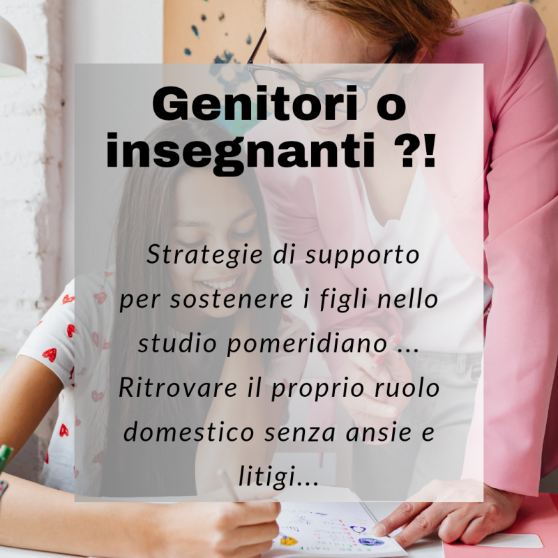 Sempre più spesso i genitori sono chiamati a fare anche da insegnanti ai figli, nella gestione dello studio e nei compiti scolastici pomeridiani, vivendo con ansia tale situazione. Incontro che fornisce strategie e supporto ai genitori.